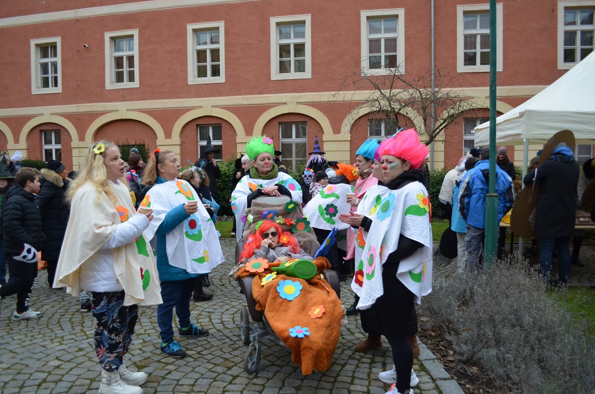 Cílem průvodu, který prošel tradičně kolem náměstí, bylo atrium našeho Domova. Zde proběhlo vyhodnocení nejlepších letošních kostýmů jak z řad uživatel, tak i školáků. Všichni měli možnost ochutnat hot drink a masopustní koláče, které připravila naše kuchyně. Počasí nám přálo a my jsme si masopustního veselí mohli užívat celé dopoledne. Za návštěvu děkujeme pozvaným spolupracujícím organizacím - TMZ