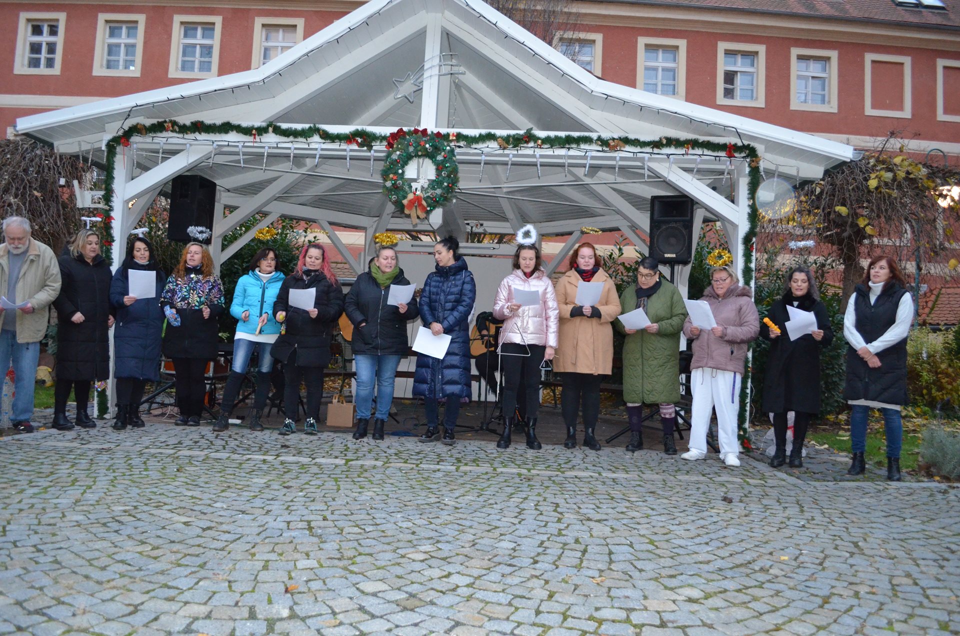 Společně s uživateli našich služeb jsme v pátek před první adventní nedělí rozsvítili vánoční výzdobu našeho Domova. Akci jsme zahájili v 16 hodin zpíváním vánočních koled. Kuchyně nám připravila báječný vánoční čaj a svařáček. Po vystoupení paní ředitelky, která všem uživatelům a pracovníkům poděkovala za vzájemnou spolupráci v roce 2024 a popřála klidné adventní dny, pokojné svátky a jen to nej do dalšího roku, který nás čeká, se rozzářila výzdoba ve dvoře Domova.